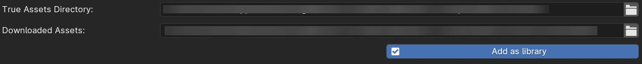 Specify the TrueASSETS directory here (Default directories won't work). This is where all your created assets will be stored. Subdirectories will be automatically created for each type of asset.