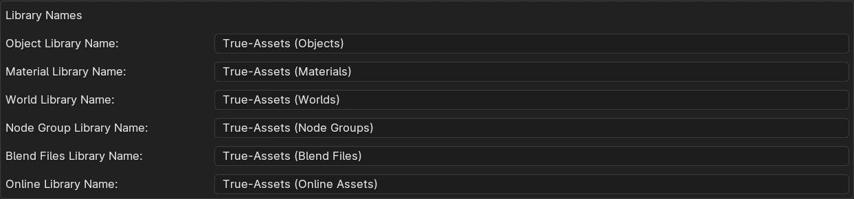 Adjust the names of the TrueASSETS libraries here if you desire.