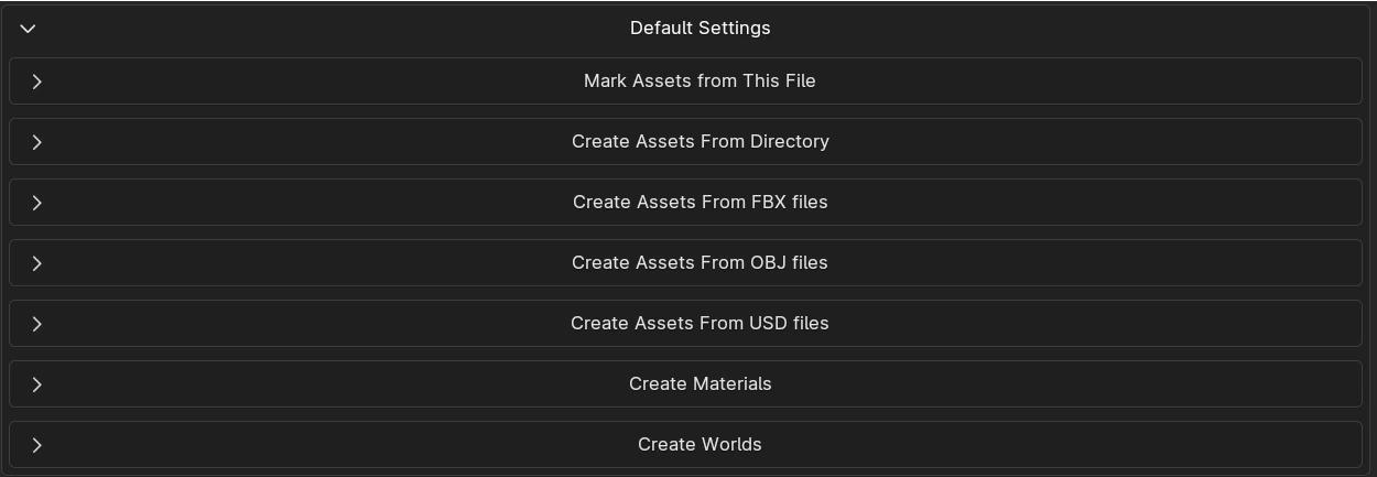Configure default settings for all the asset creation operators to save time and streamline your workflow.